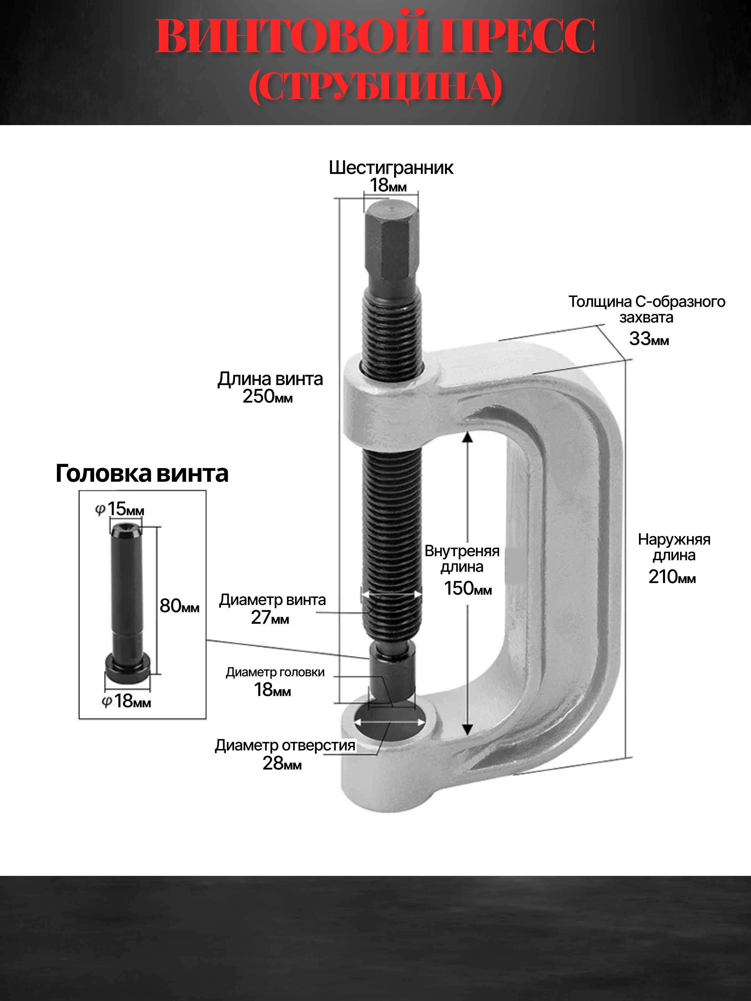 Набор для замены сайлентблоков, установки сайлентблоков и шаровых опор со струбциной. Уникальный инструмент, который поможет быстро и эффективно выполнять работу. Набор состоит из 10 предметов - струбцину и адаптеры