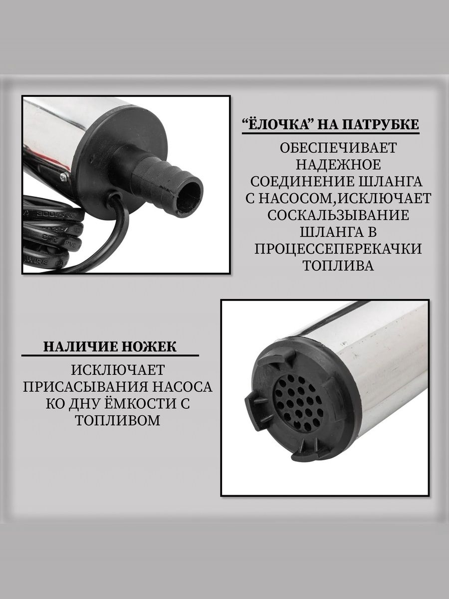 Насос погружной для перекачки топлива, воды, жидкости, топлива 12v с пистолетом и шлангом . Топливный насос предназначен для перекачки: дизельного топлива, керосин.. Насос для ГСМ оснащен специальной «елочкой» на патрубке, в комплекте хомут для шланга, что гарантируют надежное крепление шланга к насосу. Наличие на нижней части насоса специальных ножек исключают присасывание ко дну емкости во время перекачки топлива. Насос этой модели изготовлен методом инновационной запрессовки пластмассовых деталей насоса в корпус с использованием клея герметика, что позволило отказаться от дополнительной фиксации винтами.Насос для жидкостей и топлива оснащен выключателем на проводе, что позволяет перекачивать жидкости с идеальной точностью. Высокая производительность 25л/ мин позволяет оперативно перекачать топливо практически из любой емкости. Длина провода питания 3 м дает возможность работать с насосом на комфортном расстоянии от автомобиля.Насос погружной не предназначен для перекачки легковоспламеняющихся жидкостей с высокой степенью летучести паров: бензин, растворители, горючие спирты.Насос электрический для перекачки топлива 12v запитывается от аккумулятора авто.