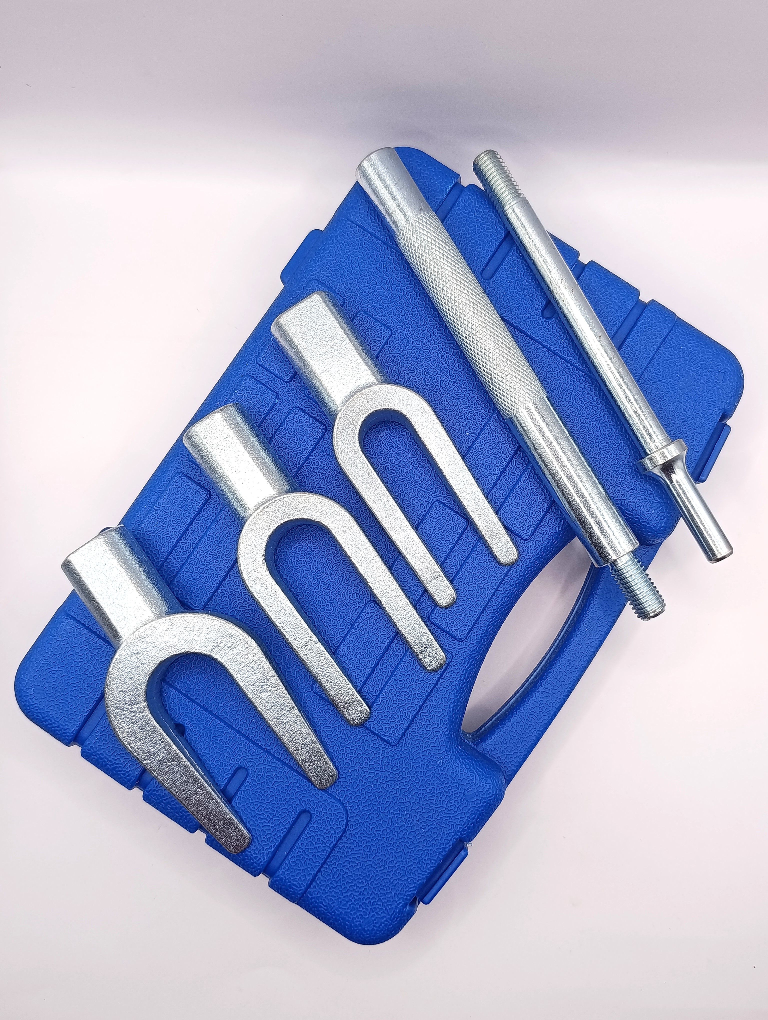 Простота использования и компактность делают этот набор незаменимым помощником при обслуживании подвески автомобиля. Подходит для демонтажа шаровых опор, рулевых тяг и других аналогичных задач.