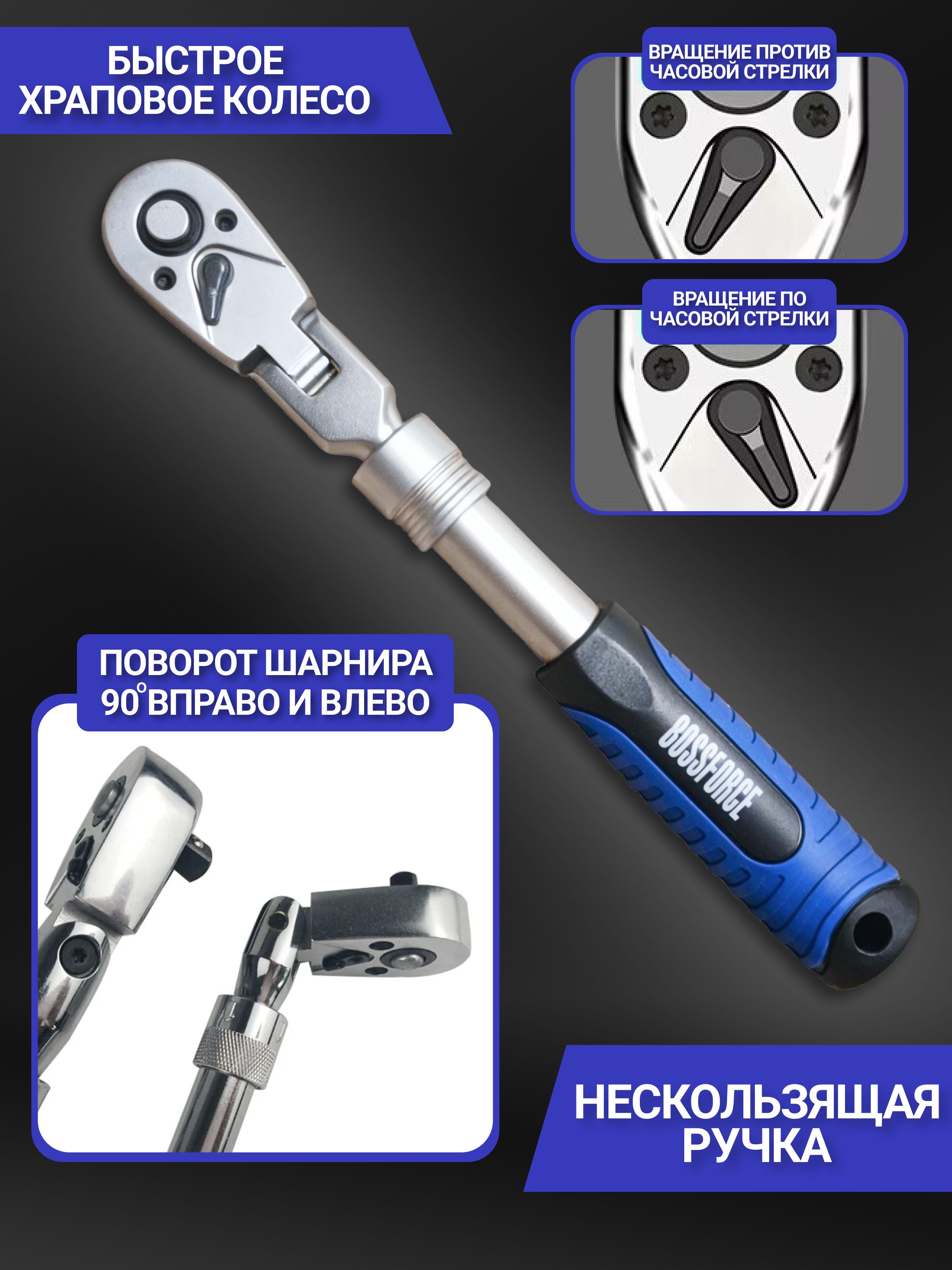 Телескопическая трещотка для торцовых головок 3/8" 250-345 мм от бренда BOSSFORCE - это идеальный инструмент для тех, кто хочет работать эффективно и быстро. Она поможет вам экономить время и силы при выполнении различных задач.